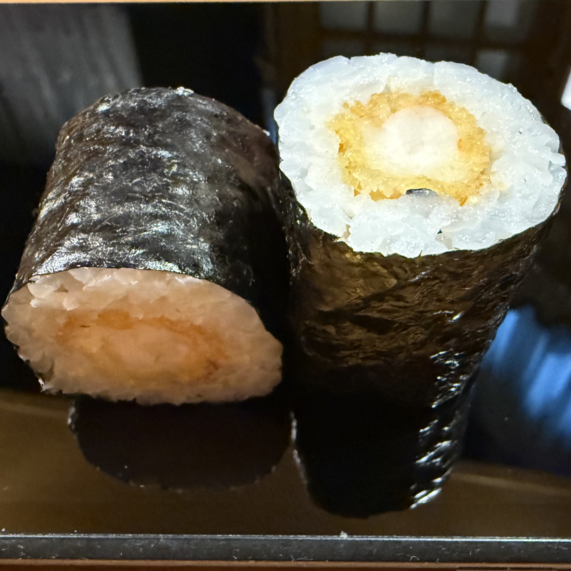 Rollo de mano relleno de atún o salmón o califotnia o ánguila o tempura gamba o cualquier ingrediente que prefiera por pieza (diganos tu sabor en comentario)